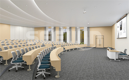 產(chǎn)品采用 E0 級 MFC 板,綠色環(huán)保,可選弧形及直排桌,滿足不同教學(xué)空間使用,儲物層板內(nèi)置插座,適用于階梯教室、標(biāo)準(zhǔn)教室等。